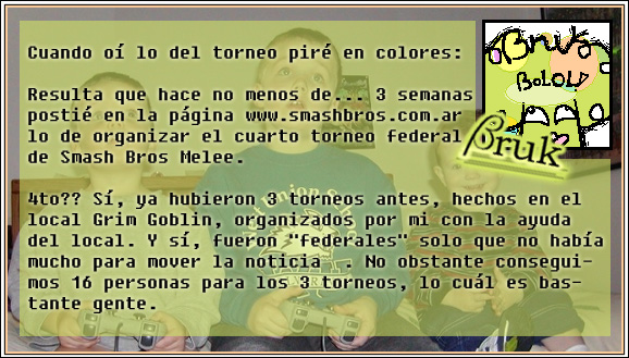 Me refiero a un mega-torneo de Smash Brothers 64 y Smash Brothers Melee del cual dará que hablar por generaciones.