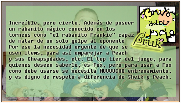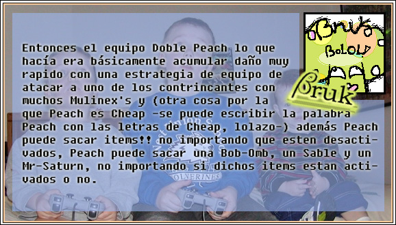 Volví mi mirada hacia dentro y vi como Rod comenzaba a pasar vergüenza en el torneo de Smash 64. LaGarza se acercaba hacia mí luciendo aún más derrotado que lo usual.