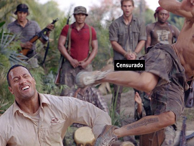 Llegado un momento los personajes estan caminando por la selva porque el banana de Stiffler hizo que él y The Rock rodaran como sacos de papas cuesta abajo por la jungla y perdieran el jeep que tenian. Desde este momento en adelante comienza una secuencia de escenas perturbantes. Stiffler quiere mear... pero está esposado. The Rock tiene que bajarle el cierre... lo hace. El 'amigo' de Stiffler sigue adentro así que el salame (Stiffler, no su 'amigo') se pone a saltar para poder sacarlo. Lo logra, se hecha un cloro y a otra cosa.. pero... MADRE DE DIOS! ... nadie le subió el cierre!